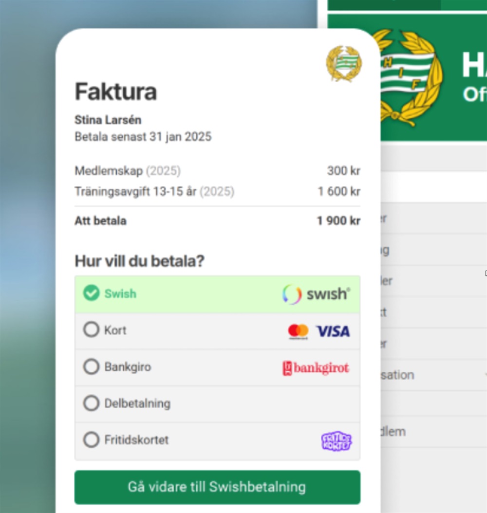 nu går det att välja Fritidskortet vid betalning av fakturor. Det alternativet dyker upp för fakturor som avser barn i åldern 8-16 år.
